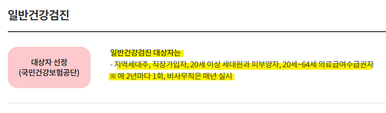 - 직장가입자 및 피부양자는 통상 2년마다 1회 검진 대상이 됩니다.