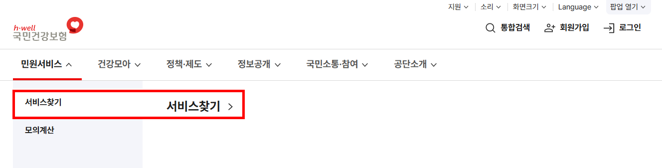 - 국민건강보험공단 홈페이지 접속