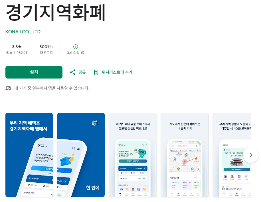 - 경기지역화폐 앱을 스마트폰에 설치합니다.