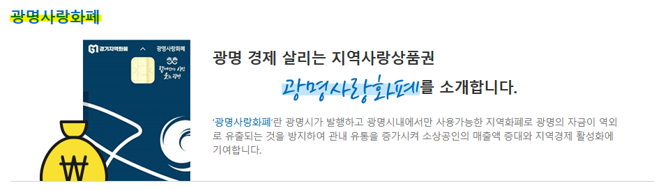 광명사랑화폐는 광명시에서 발행하는 지역화폐로, 지역 내 소비를 촉진하고 소상공인·자영업자 매출 증대를 돕기 위해 설계된 카드형 또는 모바일형 결제수단입니다.