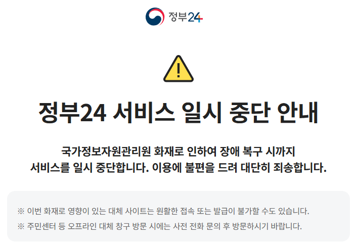 최근 정부 주요 전산 시스템이 일시적으로 마비되면서 많은 불편이 발생했는데요. 이번 글을 통해 조금 더 이해하시기 쉬운 형태로 전달드리겠습니다.