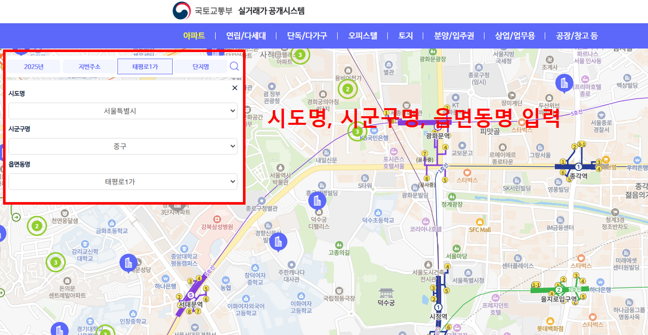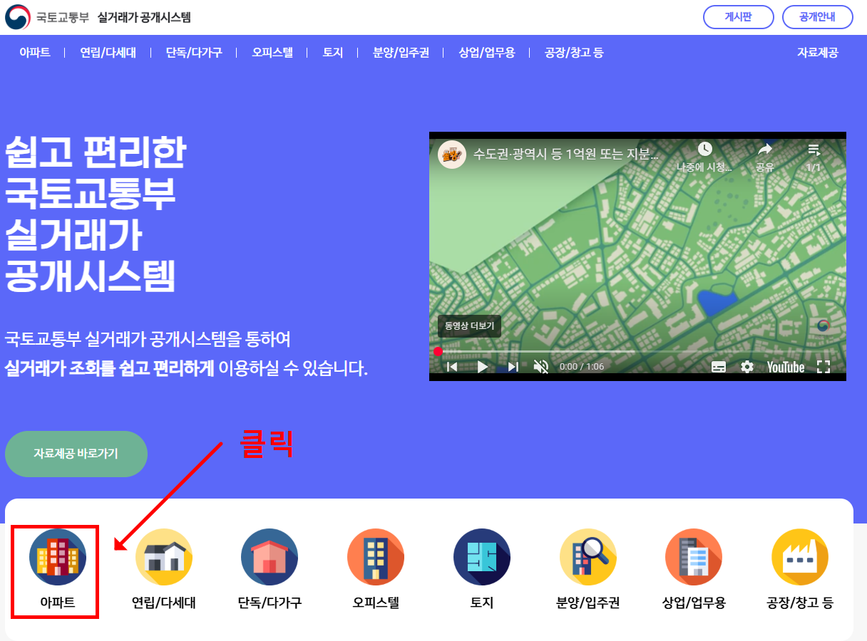 국토부 아파트 실거래가 조회 방법