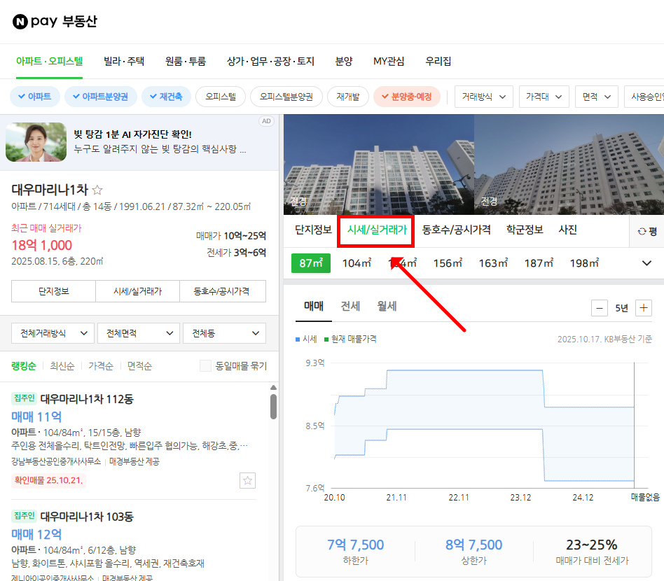면적, 층수, 방향이 다른 아파트는 가격 차이가 크기 때문에, 유사 조건의 거래 사례와 비교해야 정확합니다.
