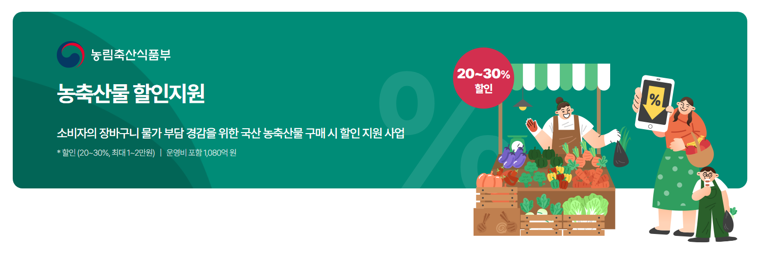 - 대형마트 및 온라인몰 : 할인 행사 참여 업체에서 국산 농축산물을 구입하면 자동으로 할인 혜택이 적용됩니다.