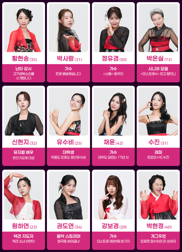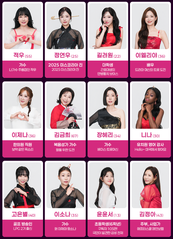 이번 시즌은 '여인천하'라는 컨셉하에 진행되는데요. 88인의 참가자와 더불어 역대 시즌의 우승자들이 심사위원으로 참가할 예정으로 알려져 있습니다.
