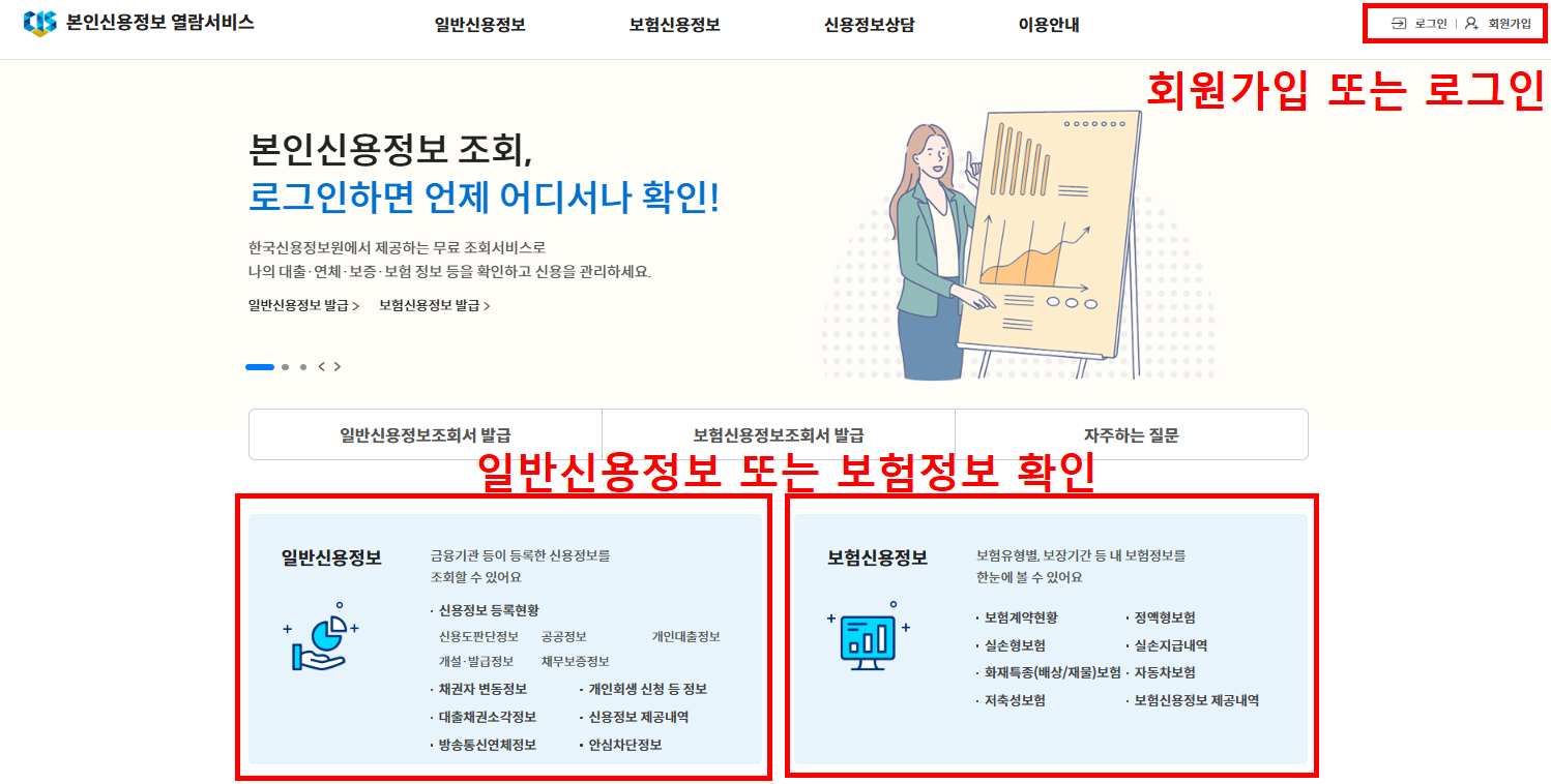 본인신용정보 열람서비스 홈페이지 및 이용방법