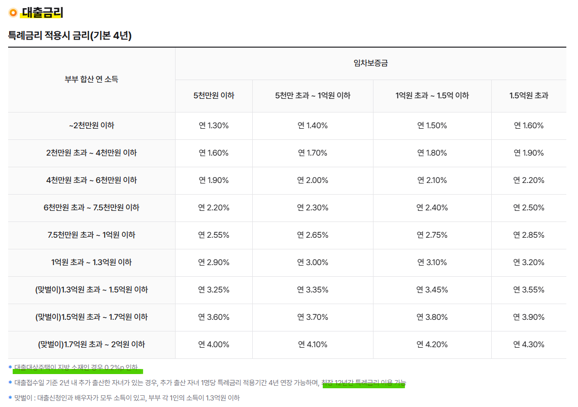 또한 대출 대상 주택이 지방 소재인 경우 0.2%p 금리 인하 혜택이 적용되므로 지방에 거주하시는 분이라면 더 많은 혜택을 받을 수 있습니다.