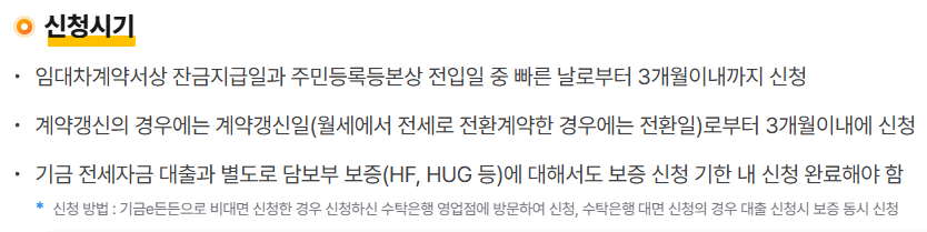 - 기타 조건: 기존에 주택도시기금 대출이나 은행 재원 주택담보대출 등을 이용 중인 경우에는 대출이 제한됩니다. 또한, 이전에 전세자금대출을 받은 경험이 있다면 중복 대출 제한이 있을 수 있습니다.