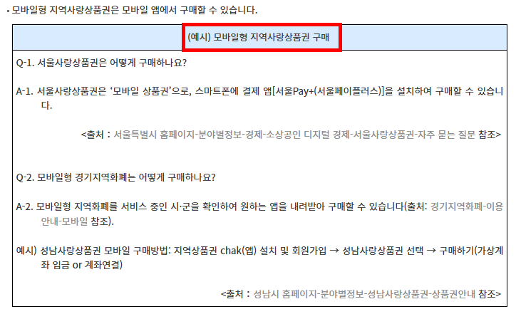 - 구매 한도 : 개인당 월 50만 원(지역에 따라 다름)