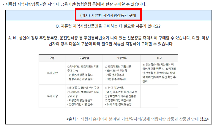- 구매 방식 : 현금으로 결제 후 지류 상품권 수령