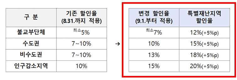 2025년 9월부터는 기존 5~10% 할인율에서 개편되어,