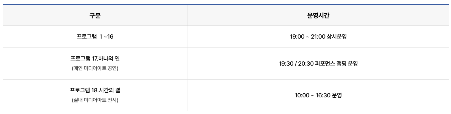 - 오후 5시 30분 이후 차량 진입 제한 : 야간 미디어아트 관람을 위한 방문 시 진입 시간 전까지 도착해야 하며, 그 이후에는 도보 이동 또는 외부 주차장을 활용해야 합니다.