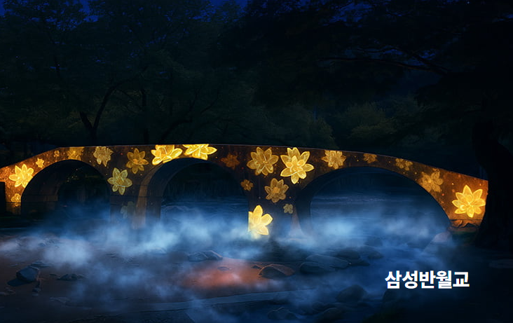 밤이 되면 경내 나무, 담장, 길가에 LED 조명과 레이저가 어우러져 몽환적 분위기를 연출합니다. “빛이 머무는 길”, “마음의 배” 등의 테마로 빛의 여정을 표현합니다. - 스토리텔링 중심의 동선 구성