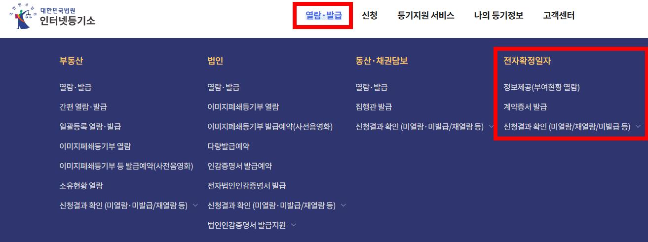 확정일자를 언제 받았는지 확인하거나, 이미 발급된 확정일자의 부여현황을 확인하려면 아래 절차를 따르면 됩니다.