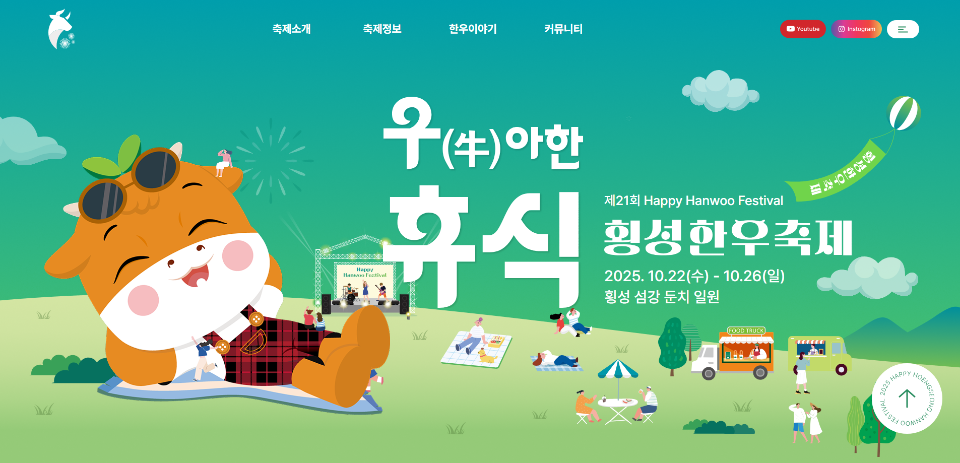 | 횡성한우축제 | 강원 횡성군 | 2025.10.22 ~ 10.26 | 지역 특산 ‘한우’ 중심의 맛과 문화 체험 |