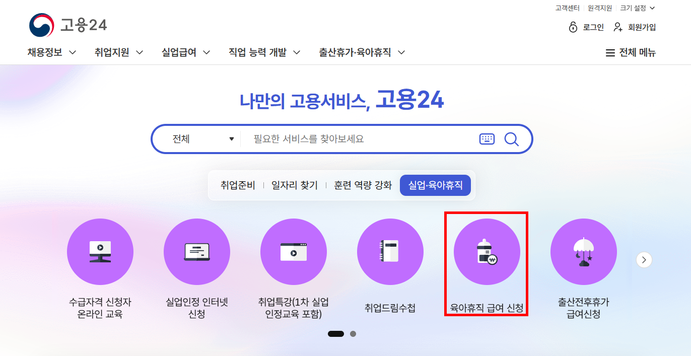 먼저 회사에 육아휴직을 신청 후 회사에서 육아휴직 확인서를 고용24에 등록해야 합니다. 이후 고용24에 접속하여 육아휴직 급여신청 메뉴에 들어간 후 신청을 하면 됩니다.