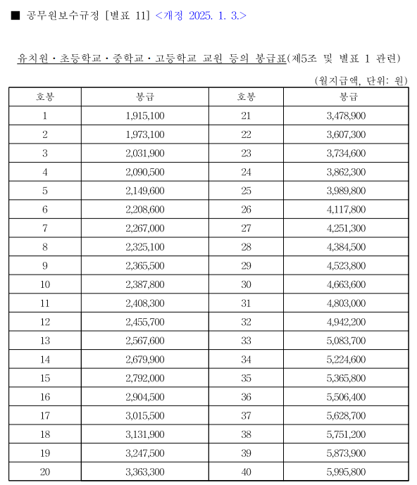 2026년 교원 봉급표는 공무원 보수 인상률 3.5%가 반영되어 조정되었습니다.