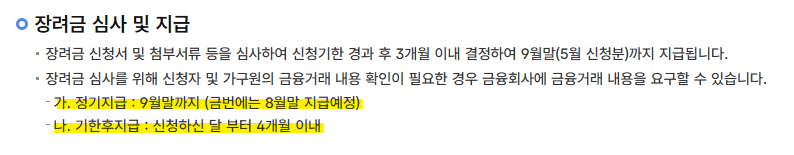 반면 기한 후 신청자는 신청일로부터 4개월 이내에 지급되므로 근로장려금 지급일이 늦어질 수 있습니다.